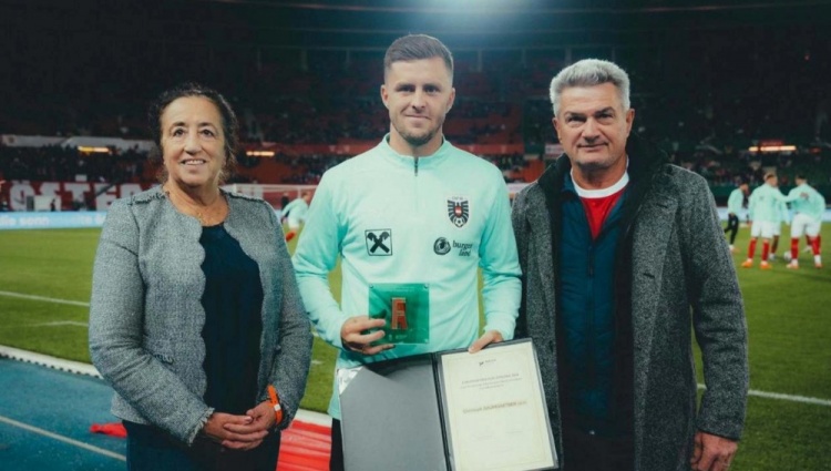 10月16日讯 莱比锡官网消息,克里斯托夫-鲍姆加特纳在新赛季伊始表现出色,已经打入两球并有一次助功 。周三,这位奥地利国脚从国家队归来时,手中还拿着一个特别的奖杯。不过,这一次吸引人们注意的并不是他的古代足球 成就。鲍姆加特纳因社会贡献而获公正 竞赛奖。
